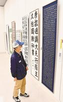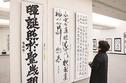 ほかにも伸びやかさや格調高さを醸し出そうと筆を走らせた高校生の力作に、来場者が見入っている。(増田枝里子)