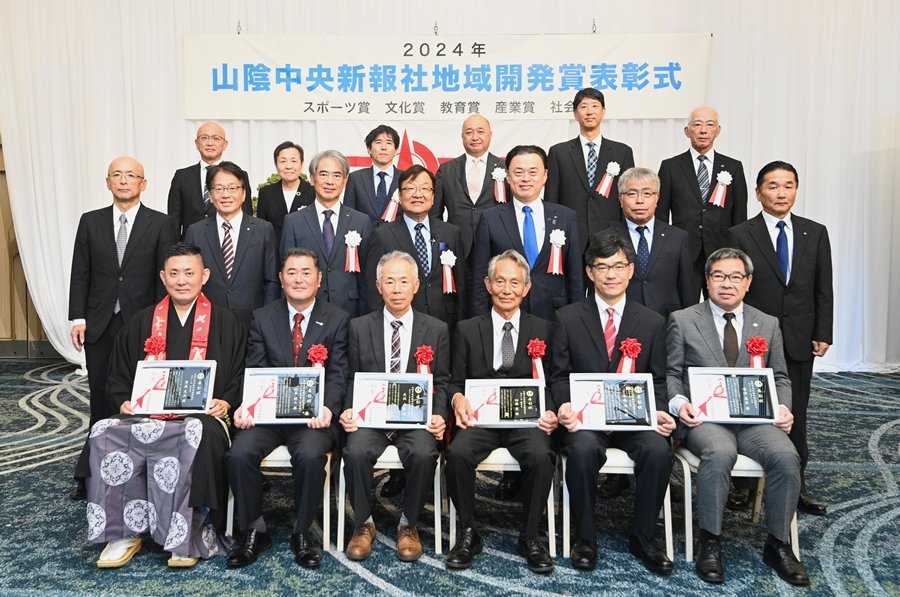 表彰式では、山陰中央新報社の松尾倫男社長が「地域のリーダー、模範として今後とも活動していただきたい」とたたえ、表彰状と副賞を贈った。