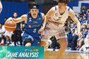 島根が再延長にもつれた激闘を制した。秋田は出だしから激しいディフェンスで、流れをつかむ。島根はディフェンス、リバウンドで反撃。最終盤に安藤、津山がフリースローを決めて逃げ切った。通算8勝1敗。