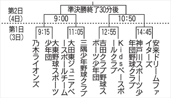 JAカップ第41回島根県学童軟式野球選手権大会(県軟式野球連盟、山陰中央新報社主催、JAしまね、JA共済連島根特別協賛)が3、4の両日、松江市営野球場(松江市上乃木10丁目)で開かれる。各地区予選を勝ち抜いた8チームを紹介する(メンバー表の選手は、左からポジション、氏名、学年の順。◎は主将)。