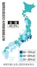 水道耐震化率 島根15事業体、全国下回る 財政負担、老朽対策優先で 山陰 2024/11/2 04:00 保存 国土交通省が公表した重要建物に接続する上下水道管などの耐震化率で、島根県内の上水道(上水道、簡易水道、水道用水供給)は24事業... 残り580文字(全文:644文字) 続きを読むには会員登録が必要です 無料会員に登録する ログインする 保存 記事を保存する この機能は有料会員限定です。保存した記事やフォローした特集をマイページでご覧いただけます。 有料会員になる ログイン 関連記事 予算、技術職員不足が壁 値上げ促す国、自治体は慎重 災害拠点 水道耐震化 表層深層 2024/11/2 04:00 災害拠点 水道耐震化15% 全国緊急点検 損壊で断水長期化も 2024/11/2 04:00 水道耐震化 市町村別公表へ 国交省 料金値上げ理解促す 2024/10/1 04:00 主要水道管の耐震化進まず 目標到達は島根県と松江市のみ 財政負担や人手不足要因 2024/2/1 04:00 クボタAIで断水戸数予測 耐震工事の優先順位に活用 2024/10/23 04:00 特集・連載 目分量で打つ覚醒剤 「被害妄想」起こしパニックに 薬物依存症だった男性(3)〈顔なき…声〉 2025/9/4 18:00 住民、竹島問題啓発を要望 5年ぶり、領土議連と意見交換 2025/2/22 04:00 揚水式発電の役割学ぶ 鳥取、環境大生 江府の俣野川発電所を見学 2024/12/11 04:00 保冷剤の「プニプニ」、何でできてる? 冬場も重宝、処分は要注意 2024/11/24 04:30 地元で育つミライのチカラ 島根県立益田翔陽高校 地域住民の懸け橋になった「西田にじいろ食堂」 運営スタッフ 出雲市万田町 小林春美さん 商品開発 女性目線大切に 若女食品㈱ 代表取締役社長 住田 真一氏 絵本の魔法、教室に広がる 邑南町矢上の朝のひととき 矢上小学校読み語りボランティア 白川富美子さん