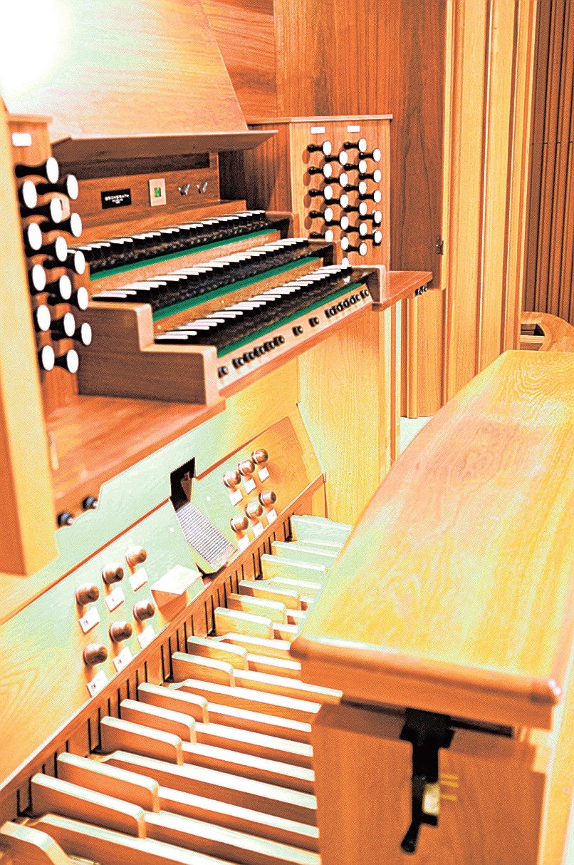 ピアノとはけん盤を押す時の感触(かんしょく)が違(ちが)うことや、いろいろな音を組(く)み合わせられるのがパイプオルガンの魅力(みりょく)だそうです。この日は「パイプオルガンのゆったりしたイメージではない曲を」ということで、「フェスティヴ・トランペット・チューン」を選曲。はつらつと明るく演奏しました。 (板垣敏郎(いたがきとしろう))