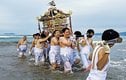 益田市の益田地区で3日、「益田七尾まつり」があり、馬に乗った大行司小行司を先頭に、よ...