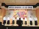 浜田市出身の演歌歌手・山崎ていじさんがこのほど、浜田市役所で、市民らとともに新曲「浜田ふるさと祭唄」の振り付けを踊って交流した。