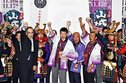 全国山城サミット益田大会を前に、益田市内の中学生が中世益田をテーマにした大型の絵画を制作した。寺社や甲冑(かっちゅう)姿での乗馬体験など城下町の姿と現代の体験を表現した。歴史文化交流館・れきしーな(益田市本町)で展示している。