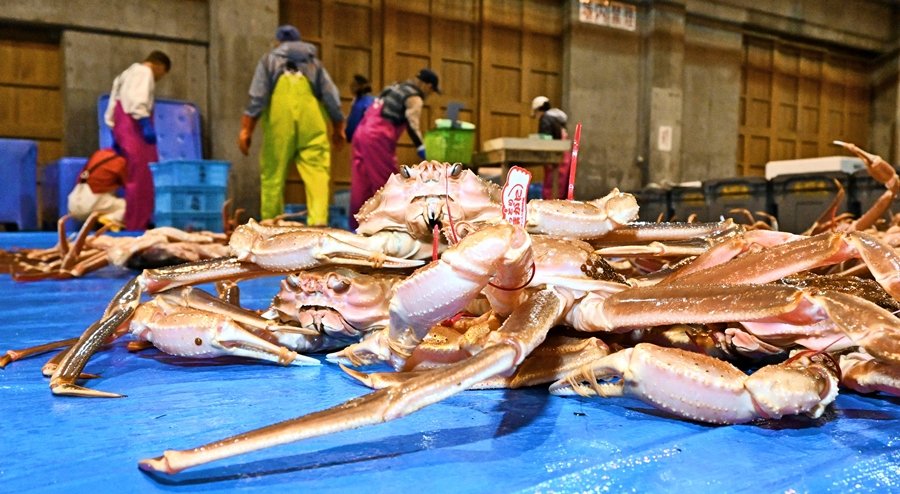 立冬の7日、冬の味覚として人気の松葉ガニ(雄のズワイガニ)が鳥取県の鳥取港、網代漁港、境漁港で今季初水揚げされ、競りがあった。このうち、鳥取港では1匹150万円で競り落とされた。資源保護のため漁期は来年3月20日、雌は今年12月末まで。