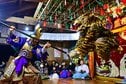 神楽が大好きというさとがた保育園(出雲市里方町)の伊藤大ちゃん(4)は「刀を振り回すところが格好良かった」と喜んでいた。