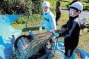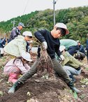 6月に苗植えした2年生19人が住民の手を借りてつるを力いっぱい引っ張り、大きな芋が地面から顔を出すたびに歓声を上げた。