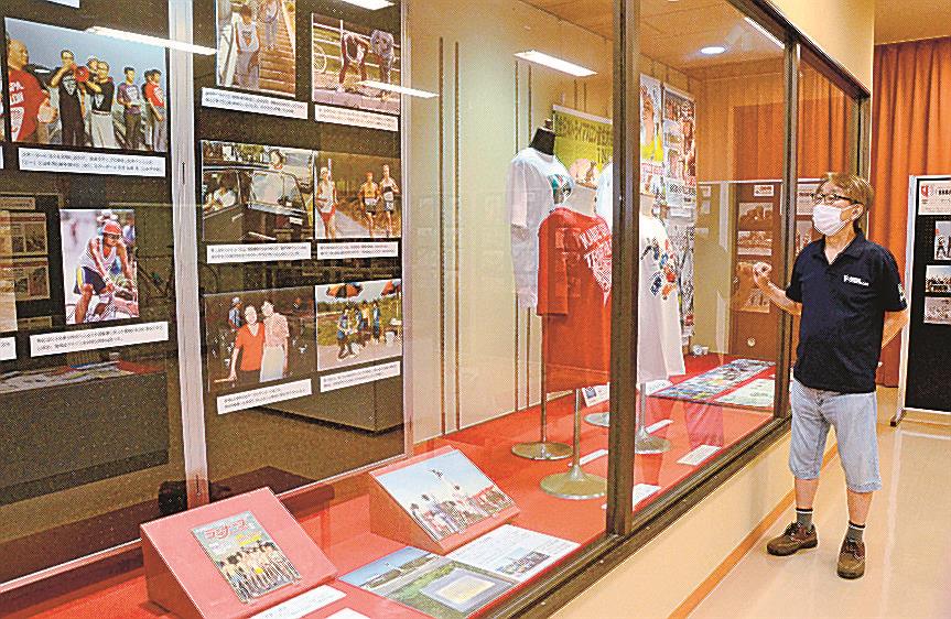 第1回大会から運営に携わる皆生トライアスロン協会の高木均副競技委員長は「トライアスロンのボランティアを通じ鳥取県西部の人々はおもてなし精神を磨いた。資料からその文化を感じてほしい」と話した。展示は皆生温泉開発100周年記念事業実行委員会と市文化財団が企画した。