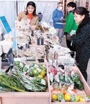 島根、鳥取両県のえりすぐりの産品を集めた「山陰いいものマルシェ」が24日、出雲市西林木町の出雲だんだんとまとアリーナ(出雲市総合体育館)であった。45店舗が販売テントで地元素材を活用した加工品などを並べ、1万2千人の来場者でにぎわった。