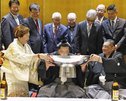 琴桜が初優勝した24日、ゆかりのある倉吉市では地元ファンら約50人がテレビ中継を見守り、歓喜に沸いた。市民にとっては祖父で...