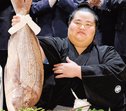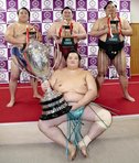 琴桜の初優勝祝う横断幕 祖父の銅像近くに設置 倉吉で祝賀イベント