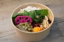 カフェでは野菜をふんだんに使った「八百屋ランチ」、大豆ミートを使ったガパオライスなどの料理を提供する。