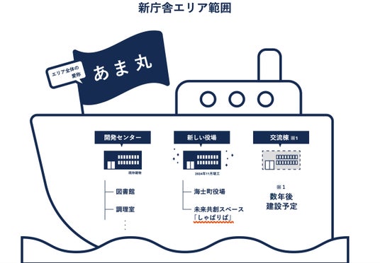 新庁舎エリアの愛称は「あま丸」に決定。未来共創スペース「しゃばりば」の運営をスタート!