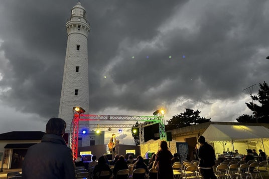 出雲日御碕灯台を背景に行うフェスは、山陰を拠点に活動するアーティストたちの音楽に耳を傾けたり、地元の美味しいグルメを楽しんだり、灯台と海と夕日を眺めながらのんびりしたり、謎解き散歩や灯台ライトアップなど多彩なコンテンツが充実。フェスとともに、出雲日御碕灯台の魅力と、周辺エリアの美しい景色やおいしい食を体験し、思い思いの時間を過ごすイベントです。