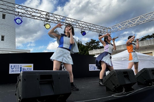 灯台前広場の特設ステージには、山陰を中心に活動するミュージシャンやアーティストなどが次々に登場して歌やダンスを披露。県内外から訪れた来場者が、屋台のグルメを味わいながらステージを満喫しました。島根県の観光キャラクター「しまねっこ」のダンスに合わせて子どもたちも踊り、アイドルグループ「フラッドリリックス」の出演には、ファンも駆けつけてステージを盛り上げました。