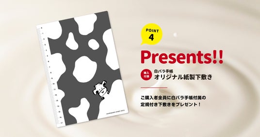 白バラ牛乳×今井出版 オリジナルデザインのスケジュール帳!地元ブランドによるタッグが、大好評につき今年も実現。今回の付録は「白バラ手帳 オリジナル下敷き」!