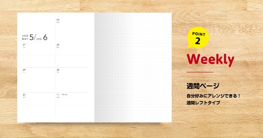 週間の予定とメモがしっかり書き込める週間レフトタイプを採用。