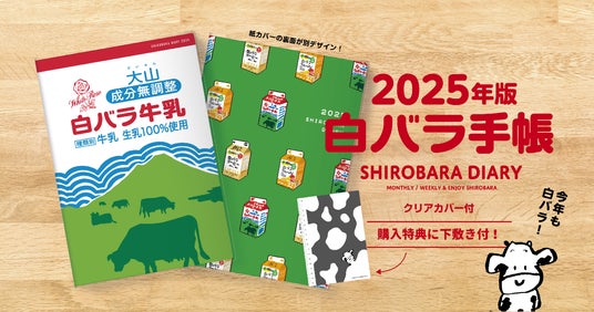今井出版(今井印刷株式会社 本社:鳥取県米子市)は、本年も大山乳業農業協同組合様の「白バラ牛乳」とのコラボレーションで、オリジナルデザインのスケジュール帳『白バラ手帳2025』を発売いたします。
