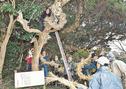 稲わらで作った大蛇を神木に巻き付ける荒神祭「蛇(じゃー)巻(ま)き」が28日、島根県知...