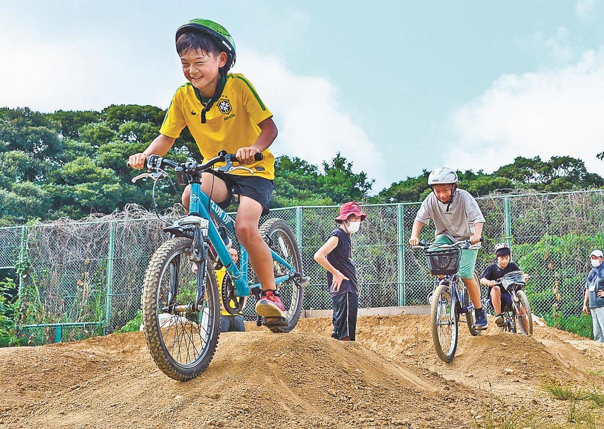 住民有志もミニショベルカーやローラー車を提供しながら作業に協力し、盛り土を固めて、1カ月ほどかけて1周50メートルのコースを整えた。高さ50~60センチのこぶが波打つように連続する場所や、45度の傾斜のある急カーブを設けた。いつでも無料で利用でき、MTBやBMXのほか、シティーサイクルや子ども用自転車も乗り入れできる。
