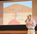 賀茂神社(邑南町中野)にはかつて三重塔があり、大日如来像が本尊として祭られていたことを紹介。「神社の境内に仏像があるという中世の神仏習合の特徴を表している」と歴史的な意義を語った。