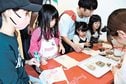 参加した親子約50人は、手のひらに青やピンク、黄緑色などのインクを付け、A4サイズの台紙にそれぞれの手形を圧着した。シールや線を加えて好きな絵に仕上げた。