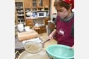 そば粉に少しずつ水を混ぜて全員で「おいしくなあれ」と唱えながらこねた。丸い生地になると児童から驚きの声が上がった。麺棒で生地を延ばす際は、一人ずつ交代しながら力を込めて作業に取り組んだ。
