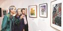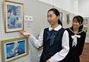 益田市あけぼの東町のギャラリー茶房「ちいさなぎゃらりーうつわ」で、木版画、水彩画、...