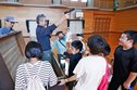 上映会には出演者や保護者、関係者ら約100人が参加した。教室や音楽室を舞台に真剣に演技する児童がスクリーンに映し出されると熱心に観賞し、終了後は大きな拍手を送った。