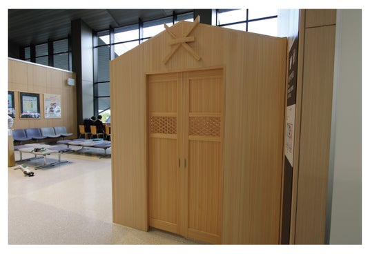 今般、2025年大阪・関西万博開催に関連する交通バリアフリー施策の一環として、空港にカームダウンスペース※を設置することが目標に掲げられています。この取り組みにおいて、出雲市、島根県立出雲工業高校、島根建具組合、そしてナカバヤシ株式会社が産官学の連携を図り、出雲縁結び空港にカームダウンスペースを設置するプロジェクトを進めました。