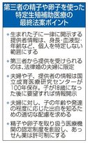 第三者から提供された精子や卵子を使う不妊治療の制度を定める「特定生殖補助医療法案」を策定するために超党派議員連盟が開いた総会で、提供精子で生まれた当事者...