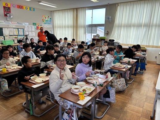 青谷小学校でも、たくさんの笑顔とともに、初めてウニを食べたが美味しかった。ウニが苦手だったが、ご飯に入っていると食べられるなどの感想が寄せられました。