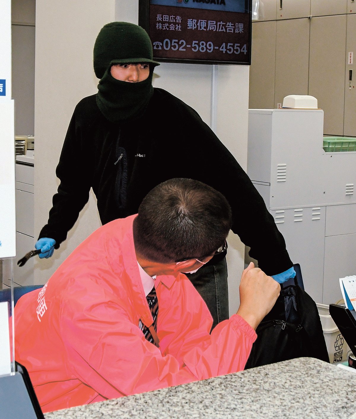 交流サイト(SNS)で強盗などの実行犯を募る「闇バイト」による強盗対応訓練が18日、安来市安来町の安来郵便局であり、局員が万一の事態に備えた。