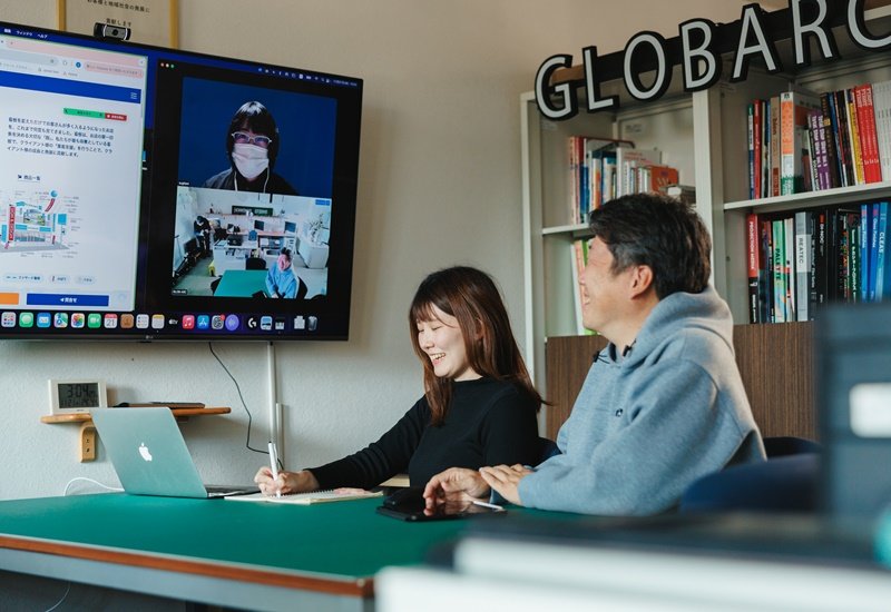 屋外看板のデザインから設計、製作、施工までを展開するグローバーク(松江市上乃木8丁目)。松江市中心部のビルの一室に構える事務所では、緩やかなBGMが流れる中で、社員らがパソコンに向き合っていました。大型モニターにはテレワーク中の社員が映し出され、必要に応じて画面越しに言葉を交わします。西森靖社長は「働きやすさ」を追求し、職場環境の改革に常に取り組んでいます。