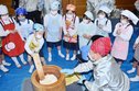 施設の利用者や地元企業の社員など約50人が見守る中、職員らが「ソイヤ!」と声をあげながら力いっぱいきねを振り上げ、餅をついた。