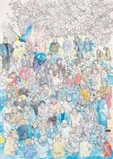 福留さんは「うまい・下手の定義を崩してもらいたい」と話し、家族の写真をテーブルに置き、手元のスケッチブックを見ずに下描きしてみるように呼びかけた。参加者は輪郭を描き上げると、色とりどりの水溶性パステルやソフトパステルを使い、水滴を落として指でにじませるなどして思い思いに表現した。