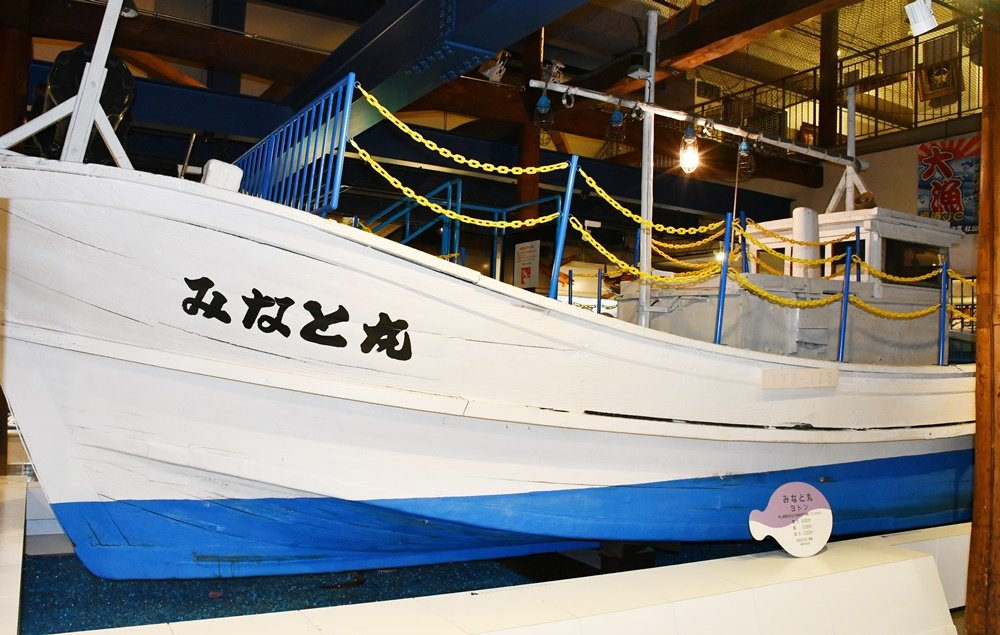 館内は撮影OK。美保湾で操業していた漁船や、ハリセンボンの剥製を天井にびっしりつり下げた「ハリセンボン通り」など、豊富なスポットで撮影を楽しもう。