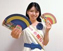 松江市殿町の島根県庁で16日、宝くじの「幸運の女神」を務める木戸結菜さん(22)が、西日本宝くじ「初夢宝くじ」の抽せん会をPRした。