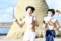 「とんどさん」お餅頬張る 出雲の園児