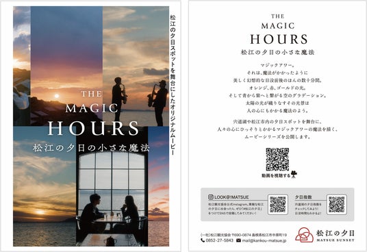 この度、一般社団法人 松江観光協会は、松江の夕日の魅力をより多くの方に届けるため「THE MAGIC HOURS 松江の夕日の小さな魔法」と題したオリジナルムービーを制作し、2025年1月17日より松江の夕日情報サイト「松江の夕日 MATSUE SUNSET」にて公開しました。