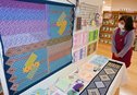布細工は同市斐川町出西の斐川環境学習センターで活動する同好会の代表、山根カオルさん(81)=出雲市斐川町上直江=が約20点を展示した。古い着物や布団を材料に作った約2・3メートル四方のパッチワークややっこだこ、つるし飾りなどを並べた。山根さんは「タンスの中に眠っていた古着が、きれいによみがえるのが楽しい」と布細工の魅力を話した。
