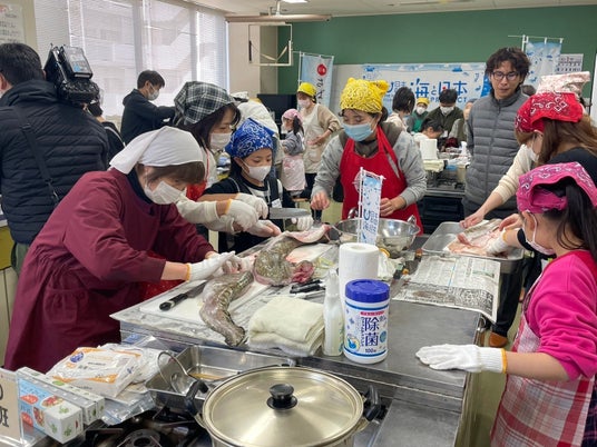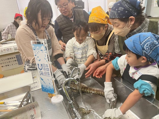 一般社団法人 海のごちそう推進機構と一般社団法人海と日本プロジェクトinとっとりは、魚を実際にさばくこと、地域の海洋変化や魚種の変遷を学ぶこと、さらに「海を味わう十の技法」による調理体験など、日本の豊かな海の食文化を継承し、輪を広げる取り組み「日本さばける塾 in とっとり」を1月18日(土)に開催し、9組21名の親子連れが参加しました。参加者は、鳥取の冬の味覚で「ばばちゃん」と呼ばれる深海魚をさばいて鍋や唐揚げなどのフルコースを完成させ、鳥取の海の豊かさを体感しました。