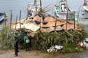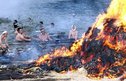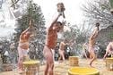 見守った約200人の参拝者は、水しぶきを上げながら一心に水行する僧侶の姿に手を合わせ、願掛けした。7カ月の女児を連れて訪れた出雲市斐川町求院の会社員守谷珠美さん(39)は「すごい迫力だった」と話し、家族の健康を祈った。