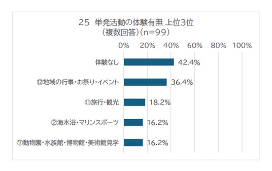 「定期活動」と同じく、「単発の体験活動」なし(ここ一年間)も4割をこえています。