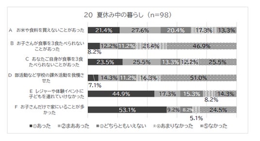お子さんの欠食は2割程度(それでも2割もおられるのです!)ですが、親御さんは半数近くが「3食食べられないことがあった」と回答されています。