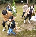 行事の元締を務めた須山茂さん(73)は「にぎやかに執り行えて良かった。末永く続けていきたい」と話した。大餅は行事が終わると切り分けられ、地元住民に厄よけとして配られた。(福間崇広)