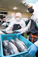 浜田市瀬戸ケ島町の浜田水産高校で4日、浜田幼稚園(浜田市熱田町)の園児が缶詰作りを...