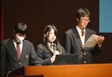 更衣室を四つ設けた屋内プールのアイデアを発表した藤田愛歌(うた)さん(18)は「使いやすい施設になるように問題意識を持ちながら制作できて良かった」と話した。(林李奈)