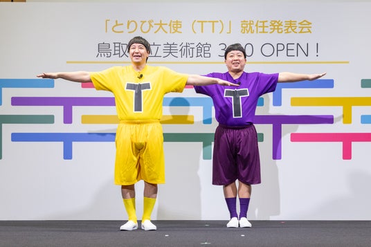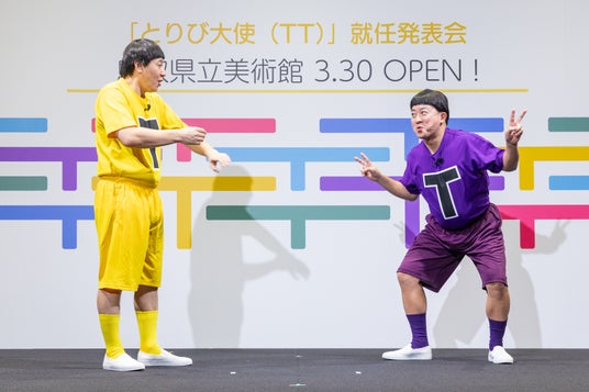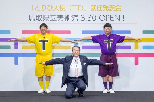 鳥取県は、2025年3月30日(日)にほぼ日本最後発の県立美術館となる「鳥取県立美術館」を開館します。開館にあたり、鳥取県立美術館のシンボルマークとなっている「T」を象徴するタレントであり、長田さんが美術短期大学、松尾さんが芸術専門学校の出身でもあるチョコレートプラネットのおふたりを応援大使に任命させていただき、2月5日(水)に「とりび大使」就任発表会を実施いたしました。